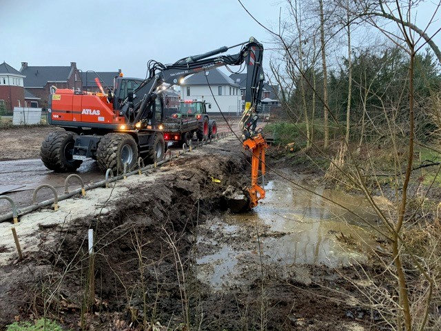 De vijver werd tijdelijk drooggelegd, waardoor we het grondwerk konden uitvoeren. Voor dit mooie project hebben we Van Lokven ingehuurd. Het water werd weggepompt, de keerwanden geplaatst, (midden door de oorspronkelijke vijver), het grondwerk op hoogte gebracht, de FirmusFIXED korven zijn geplaatst en in beton gestort. <br />Een prachtig project dat we graag gaan volgen.